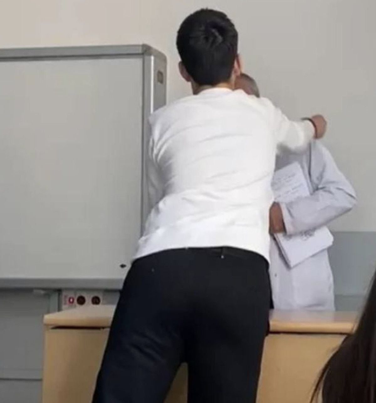Öğrencilerin alay ettiği öğretmenin daha sonrasında kürsüden düşerek kolunun kırıldığı ve hastanede tedavi altına alındığı öğrenildi.