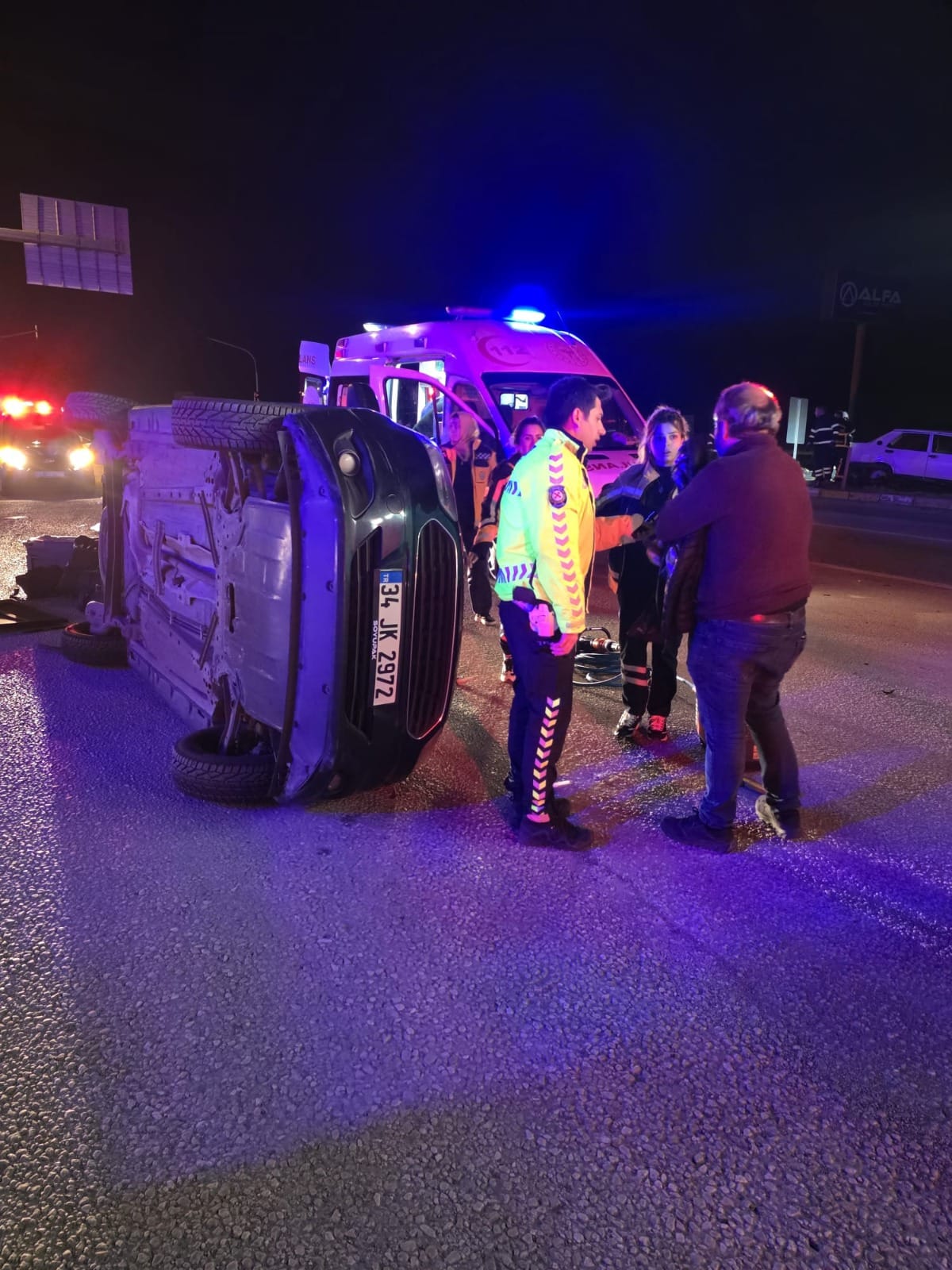 Kaza sonucu 34 JK 2972 plakalı otomobil yan devrildi. Sürücüler ile birlikte 2 otomobilde bulunan toplam 7 kişi yaralandı.